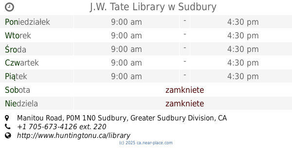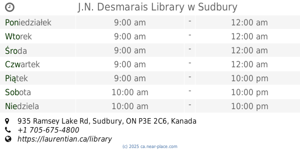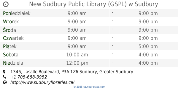 strona internetowej: www.sudburylibraries.ca